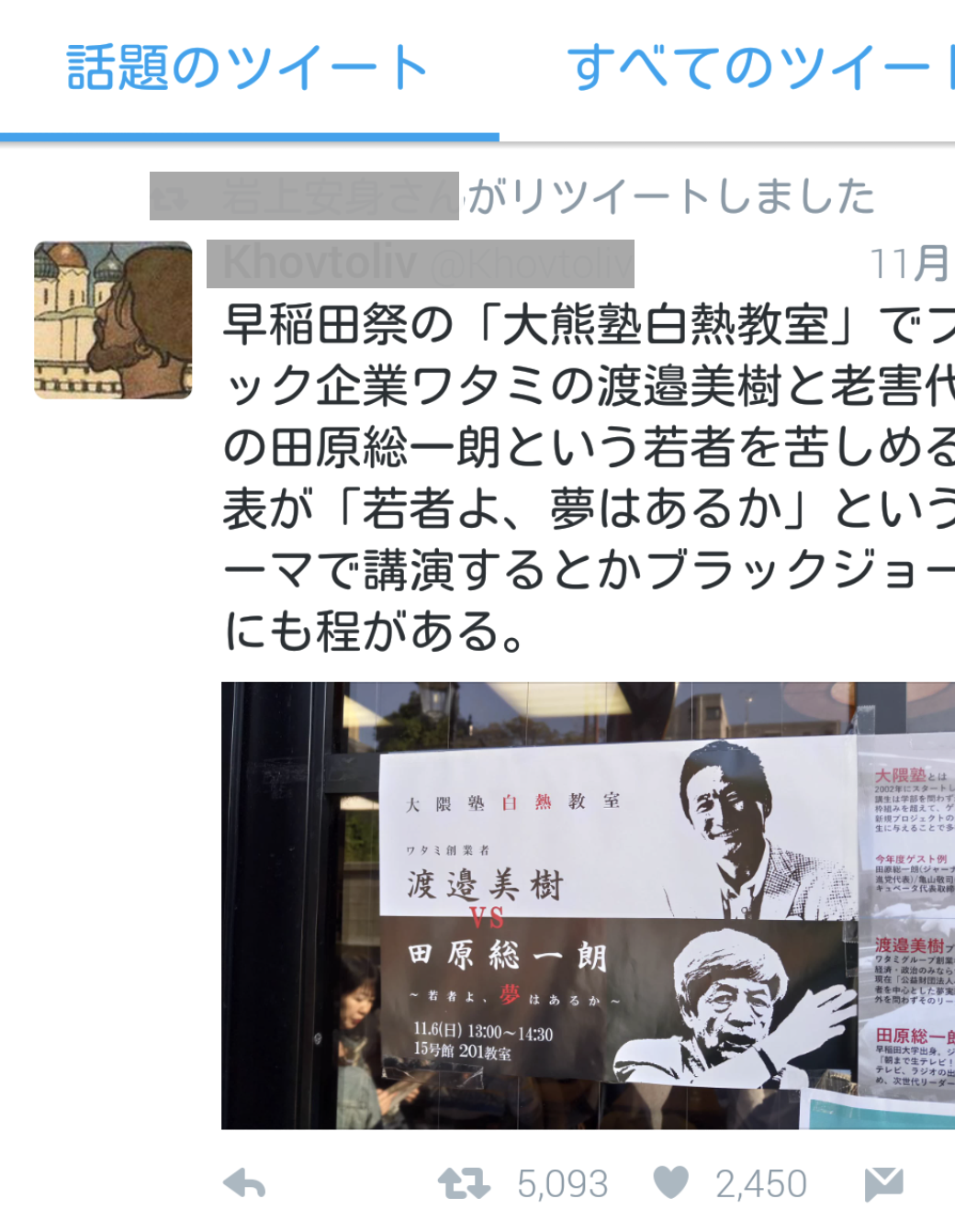 友人が企画した、学園祭でのディスカッションイベント「大隈塾白熱教室」の企画・PRのサポートをしました。