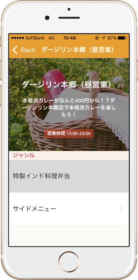 ランチタイムを快適にする、テイクアウト商品の事前予約サービスです。ユーザーは事前注文とキャッシュレス決済により待ち時間ゼロで商品を受け取れます。また、店舗側の管理アプリもあり、ユーザーからの予約を確認でき、事前に商品を調理してお客様にご提供できます。