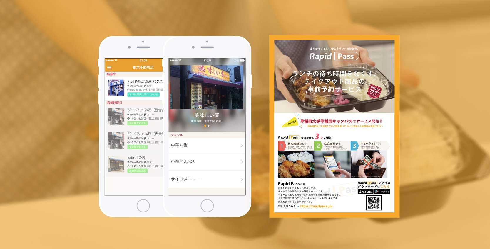 Goods株式会社が提供していたテイクアウト商品の事前予約サービス「RapidPass」のデザイン全般の制作を担当いたしました。